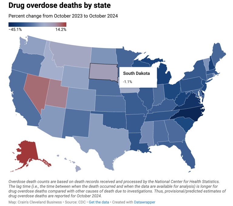WITH NO EFFECTIVE NALOXONE RESPONSE, SOUTH DAKOTA ANOTHER REVELATORY LETHAL EXCEPTION TO DRAMATIC U.S. DROP IN OPIOID OVERDOSE DEATHS