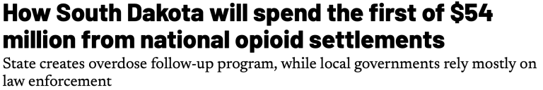 That’s not a bad thing, it’s just, as in some other locales (like here and here and here) a really late thing, lethally late, while “Opioid-related deaths continue to grow in South Dakota and have doubled from 21 to 43 in the last decade.”